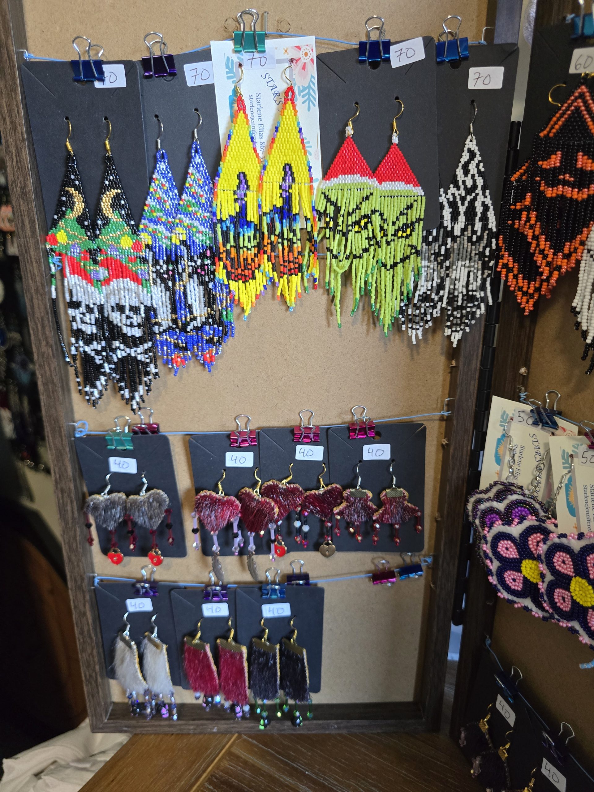Handmade slippers, mitts, earrings, baby booties, and more